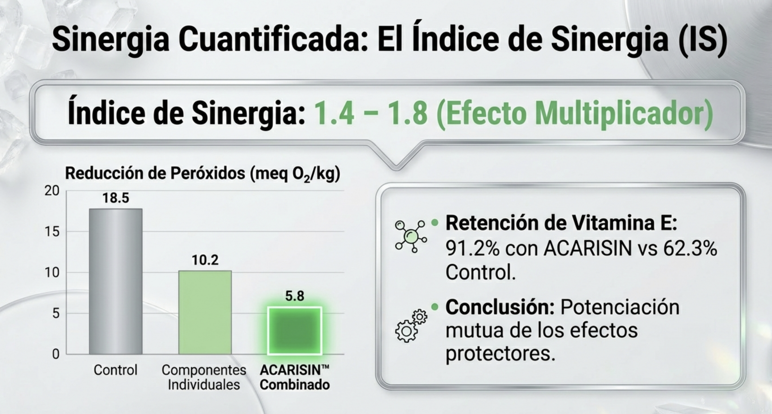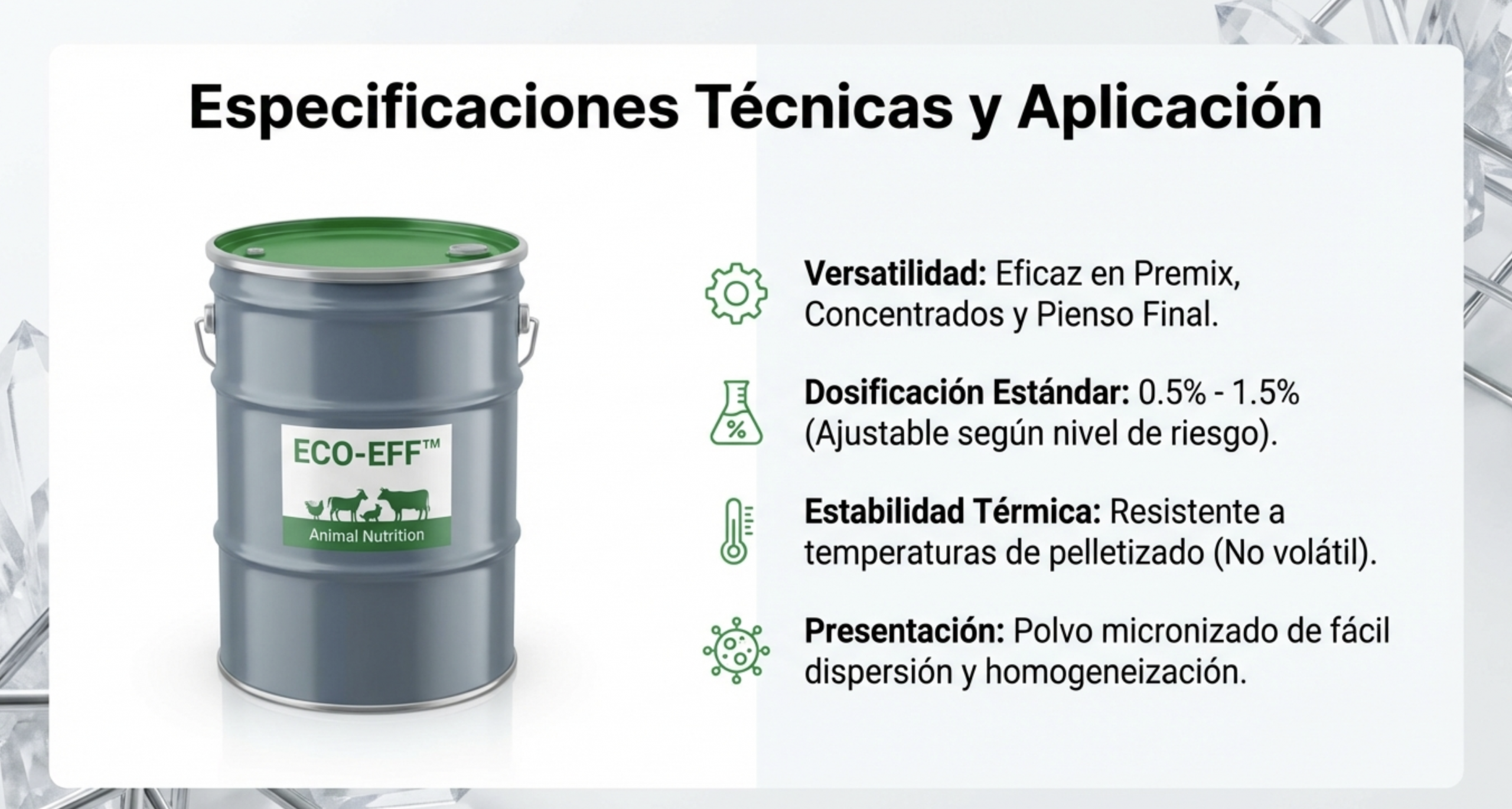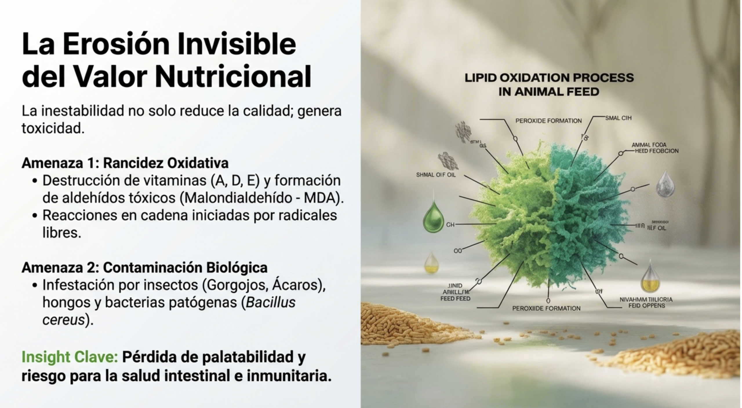 Esta solución no es solo un conservante; es un sistema de protección integral que previene la rancidez oxidativa, controla plagas (insectos y ácaros) y optimiza los costes de producción industrial, garantizando un retorno de inversión (ROI) superior a los estándares del mercado